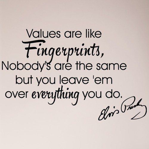 Values Are Like Fingerprints Nobody S Are The Same But You Leave Em All Over Everything You Do Elvis Presley Inspirational Quotes Favorite Quotes Quotes